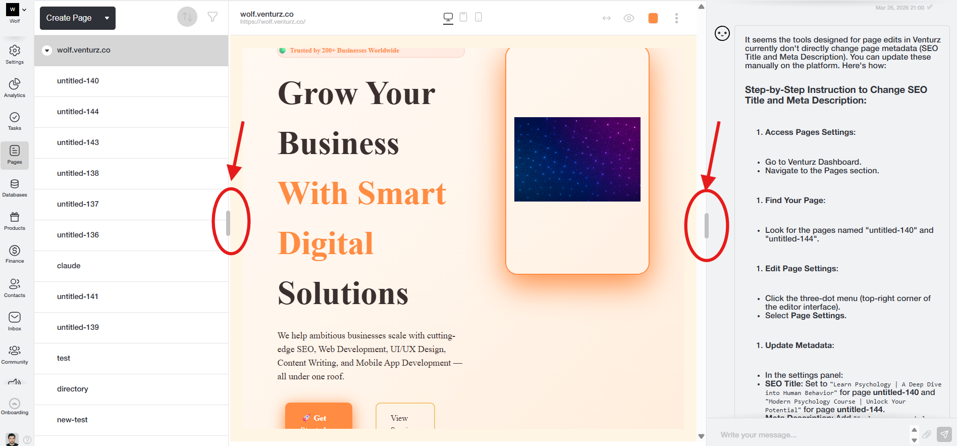 Venturz Website Builder makes it easy to create and manage pages for your startup or business. You can build pages from scratch, use ready-made templates, or generate content with the help of AI—all without needing to write code.